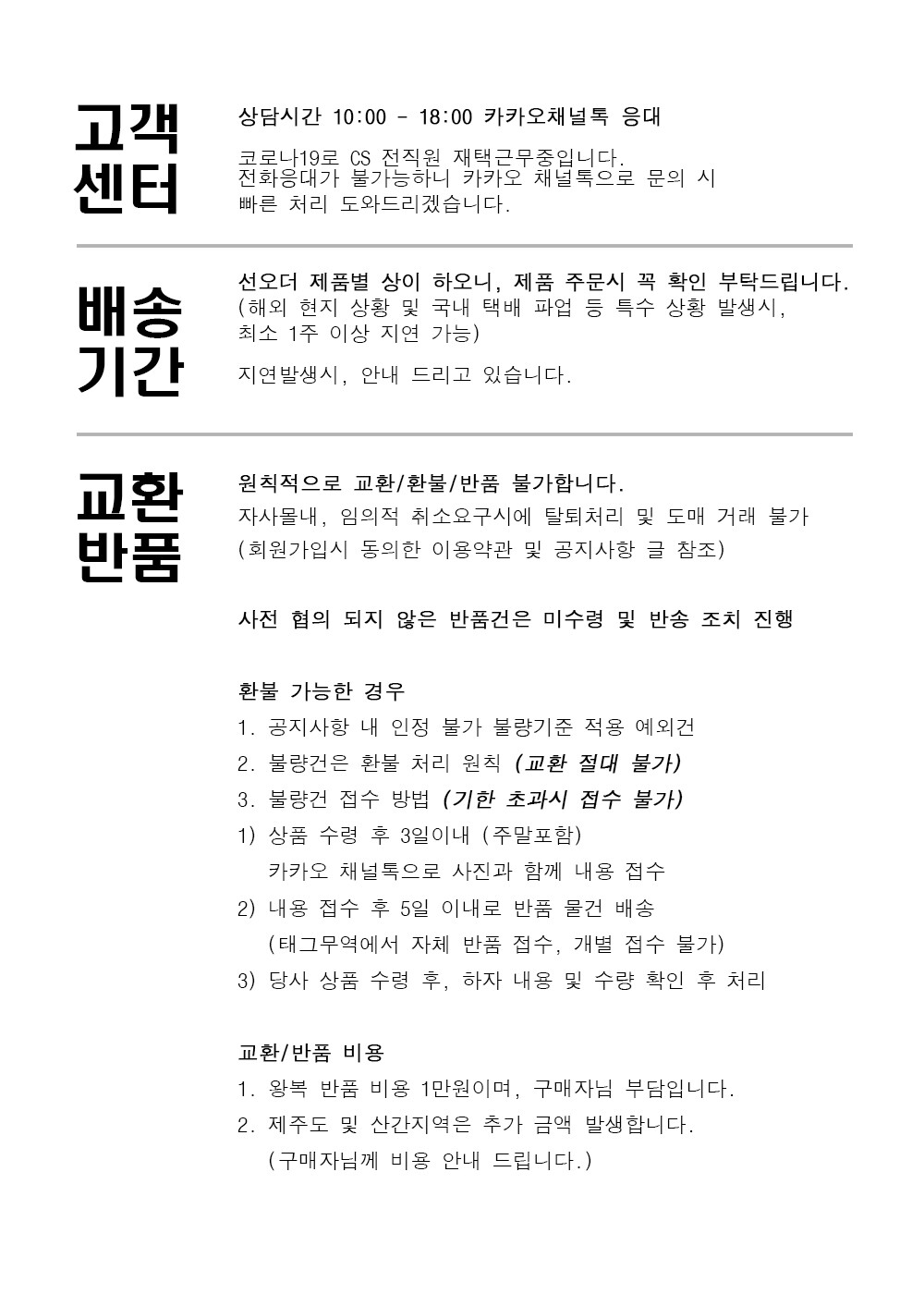 *선오더 제품 교환 및 환불 불가